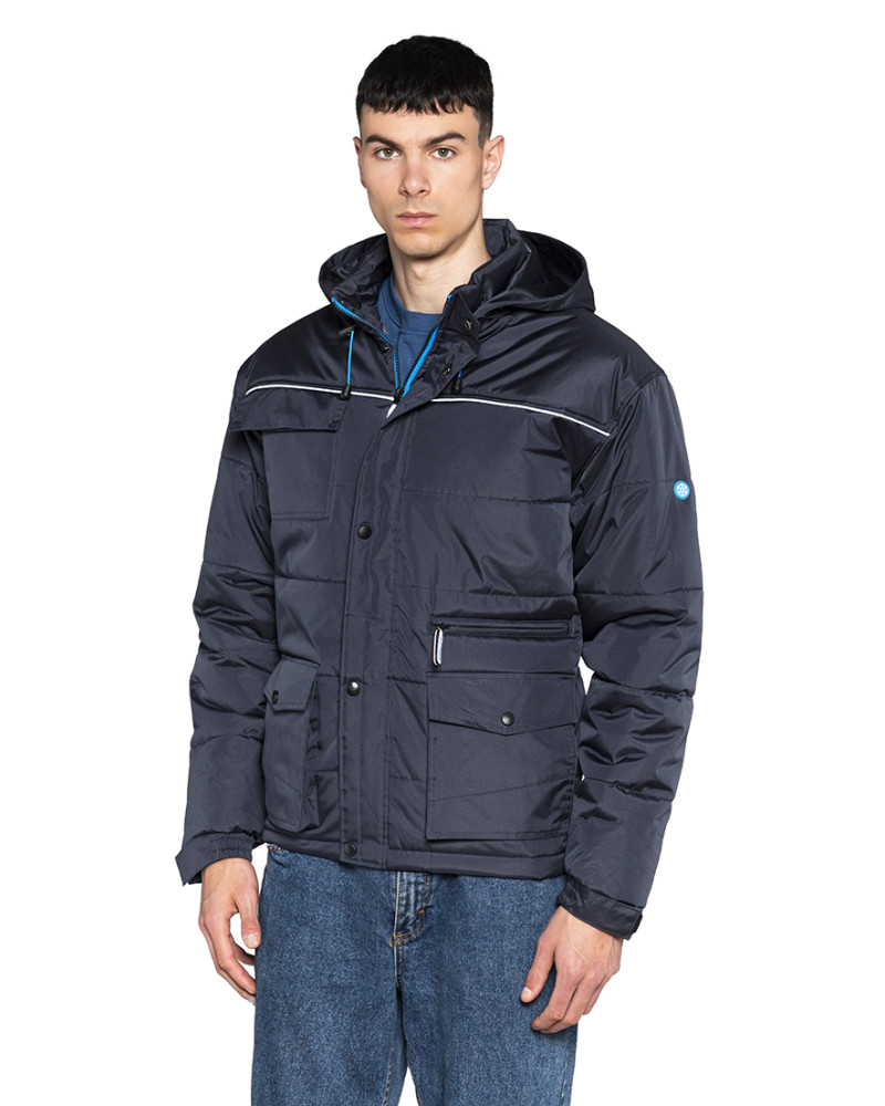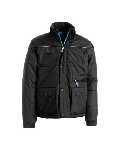 100% POLIESTERE SPALMATO PVC IMBOTTITURA: 180 g/m 2 MASTERPOLY 1 PZ. BOX 10 PZ. S - M - L - XL - XXL - 3XL DPI 1a categoria conforme UNI EN 14058 Chiusura centrale con cerniera in colore a contrasto e pattina chiusa con bottoni 2 tasche laterali 2 tasche principali a soffietto con pattina e bottone Tasca con cerniera lato sinistro Tasca con pattina e velcro sul petto lato destro Tasca interna lato destro Piping silver fluo sul petto e sul dorso Cappuccio richiudibile nel collo Coulisse in vita in colore a contrasto Elastico ai polsi e stringipolso in velcro Zip interna per agevolare stampe e ricami