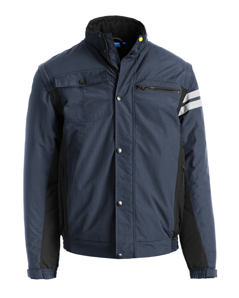 - S - M - L - XL - XXL - 3XL DPI 2a categoria conforme UNI EN 14058 Chiusura centrale con cerniera ricoperta da pattina e bottoni Bande fluo braccio sinistro Barde riflettenti sul retro 2 tasche laterali con cerniera Tasca con pattina e bottone sul petto lato destro Tasca con cerniera sul petto lato sinistro Elastico ai polsi con chiusura in velcro Elastico laterale in vita Tasca interna con velcro lato sinistro Zip interna per agevolare stampe e ricami * MANICHE STACCABILI*