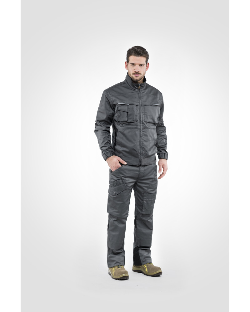 COLORE: GRIGIO CON CONTRASTI NERI 65% POLIESTERE, 32% COTONE TWILL, 3% ELASTAM 250 g/m2 MASTERPOLY 1 PZ. BOX 10 PZ. S - M - L - XL - XXL - 3XL DPI 1a categoria STRETCH CHIUSURA CON CERNIERA 2 TASCHE PRINCIPALI 2 TASCHE SULLA GAMBA DX, DI CUI: 1 CON BOTTONE, 1 CON CHIUSURA A CLIP 2 TASCHE SULLA GAMBA SINISTRA ALLOGGIAMENTO PER GINOCCHIERA conforme UNI EN ISO 13688 (testato per la protezione contro le lesioni meccaniche superficiali)