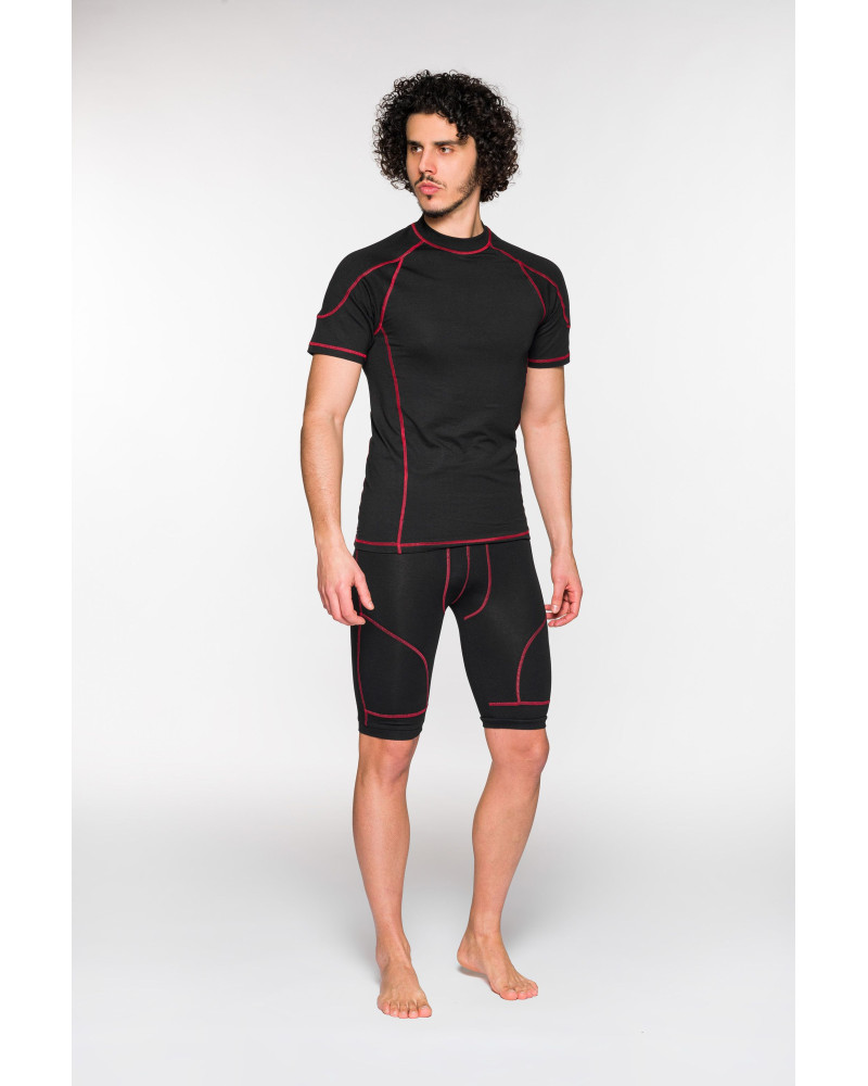 - Short Underwear Modal/Cotone/Spand - Caratteristiche principali:Materiale:47,5% modal47,5% cotone5% spandexPeso tessuto: 200 g/m²Colore: NeroTaglie disponibili: S/M, L/XL, XXL/XXXLDesign e comfort:Realizzati con una combinazione di modal e cotone, questi shorts termici offrono una sensazione di morbidezza sulla pelle, mantenendo il corpo caldo e confortevole