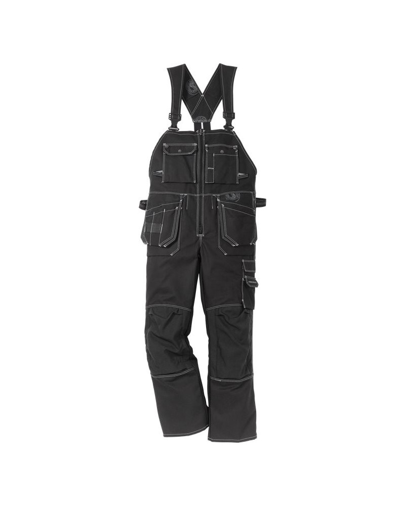 Bretelle regolabili con banda elastica centrale / Cerniera frontale a doppio cursore / 2 tasche pettorali flottanti con porta penne e 2 bottoni con passante porta coltello con fodero / 2 Tasche flottanti rinforzate in CORDURA®, 1 con tasca extra, 1 con 3 piccole tasche e passanti porta attrezzi / 2 ampie tasche anteriori e posteriori / Tasca porta metro / Tasca sulla gamba con tasca porta attrezzi / Tasca porta penne / 2 passanti porta martello, 1 regolabile / Tasche porta ginocchiere rinforzate in CORDURA® con accesso interno / Regolazione dell'altezza delle ginocchiere nella tasca / Certificata in conformità alla EN 14404 insieme alle ginocchiere 124292 / Certificazione OEKO-TEX®.