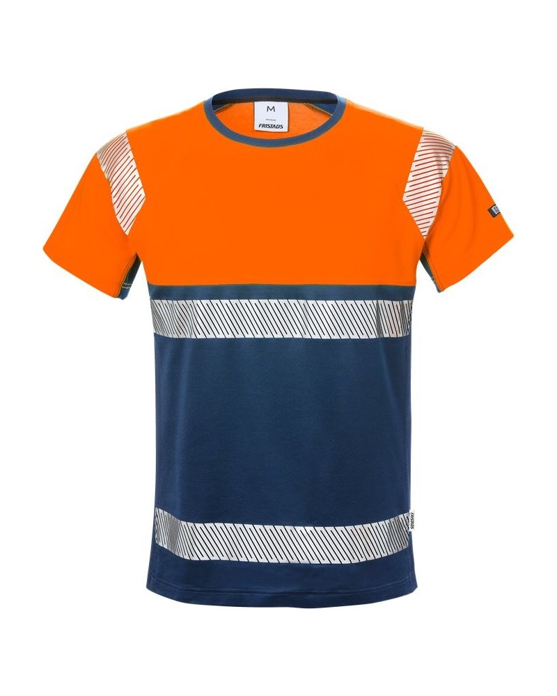 Colletto in maglina a coste / Maniche Raglan / Transfer rifrangente a strisce / Certificata in conformità alla EN 13758-2 Protezione contro i raggi solari UV UPF 40+ ed EN ISO 20471 classe 1 / Certificazione OEKO-TEX®.