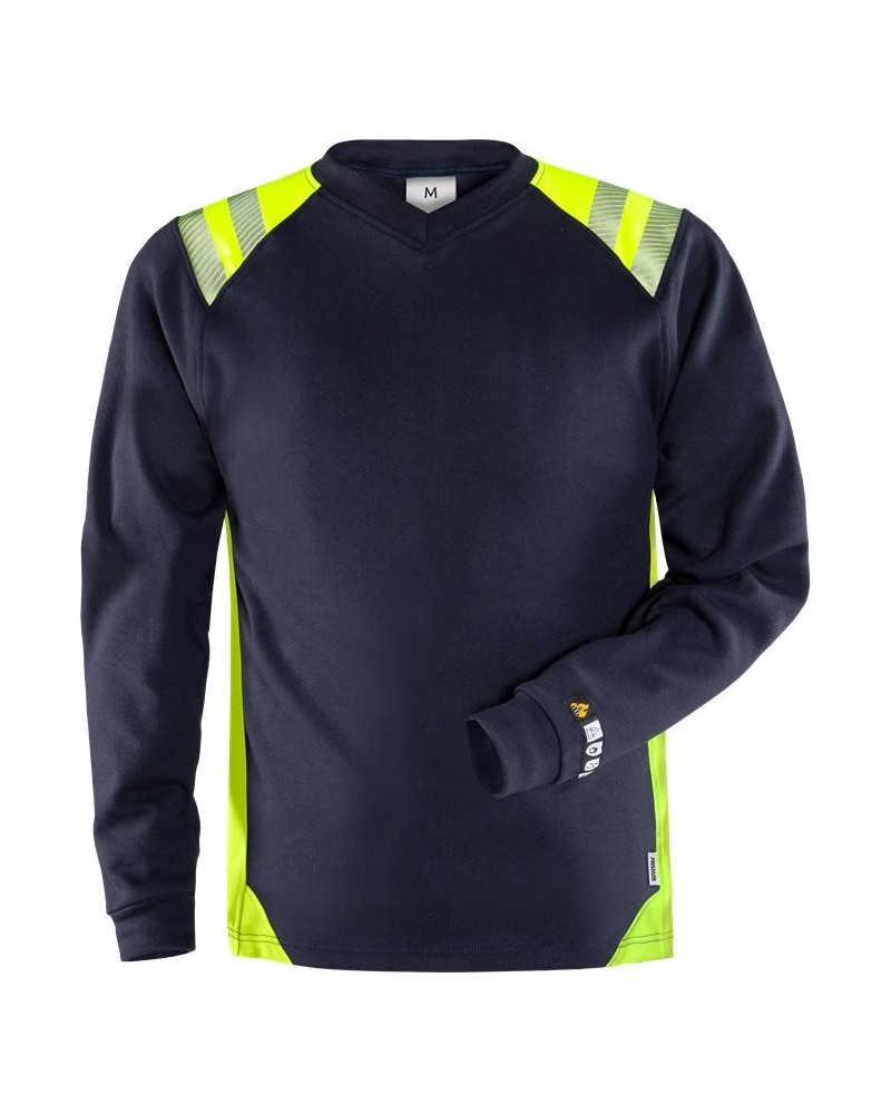 Scollo a V / Maniche raglan / Certificata in conformità alla EN 61482-1-2 classe 1, EN 61482-1-1 EBT: 11,5 cal / cm² ELIM 9,5 cal / cm², EN ISO 11612 A1 A2 B1 C1 FI e EN 1149-5 / Testata per il lavaggio industriale secondo la ISO 15797 / Certificazione OEKO-TEX®.