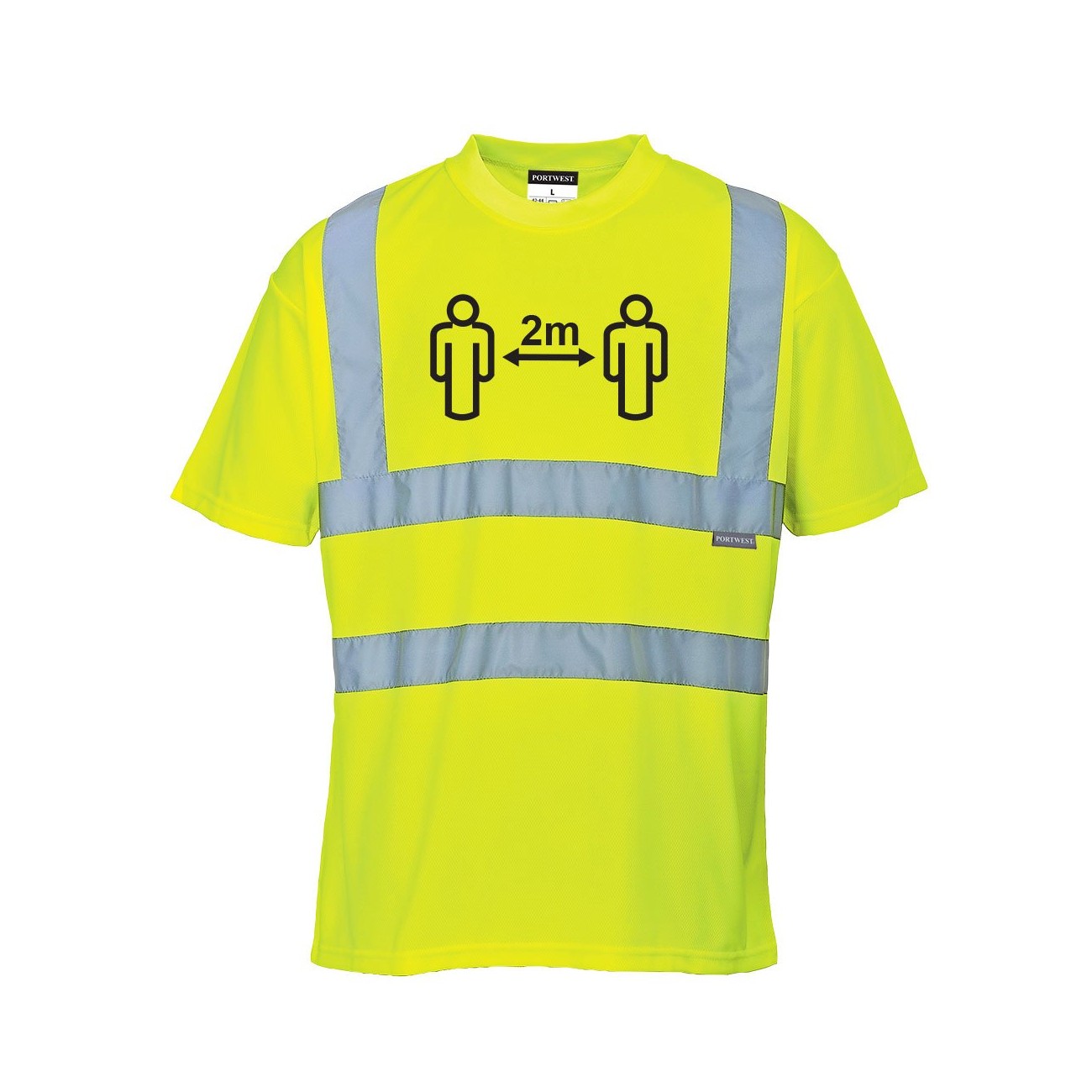 Mantieniti al fresco e al sicuro con la nuova T-shirt distanziamento sociale Hi-Vis. Il tessuto leggero e traspirante offre grande comfort e ventilazione a chi la indossa nelle calde giornate estive. Logo prestampato distanziamento sociale prestampato sulla parte anteriore e posteriore che puಠresistere a ripetuti lavaggi.