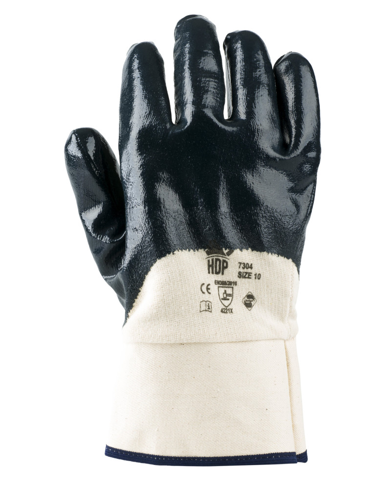 DPI 2a categoria materiale: NBR TOP QUALITY supporto: JERSEY DI COTONE colore: blu taglie: 8 - 9 - 10 - 11 - manichetta tela - dorso areato ** SANITIZED ** EN 388 cartone da 120 paia (10 x 12 paia)