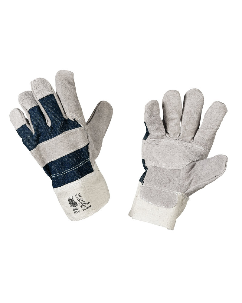 DPI 2a categoria materiale: crosta colore: ghiaccio-blu taglia: 10 - dorso jeans - manichetta tela cartone da 120 paia (10 x 12 paia)