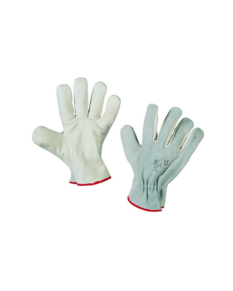 DPI 2a categoria materiale: pelle fiore, crosta colore: bianco taglie: 7 - 8 - 9 - 10 - 11 - dorso crosta - bordato cartone da 120 paia (10 x 12 paia)